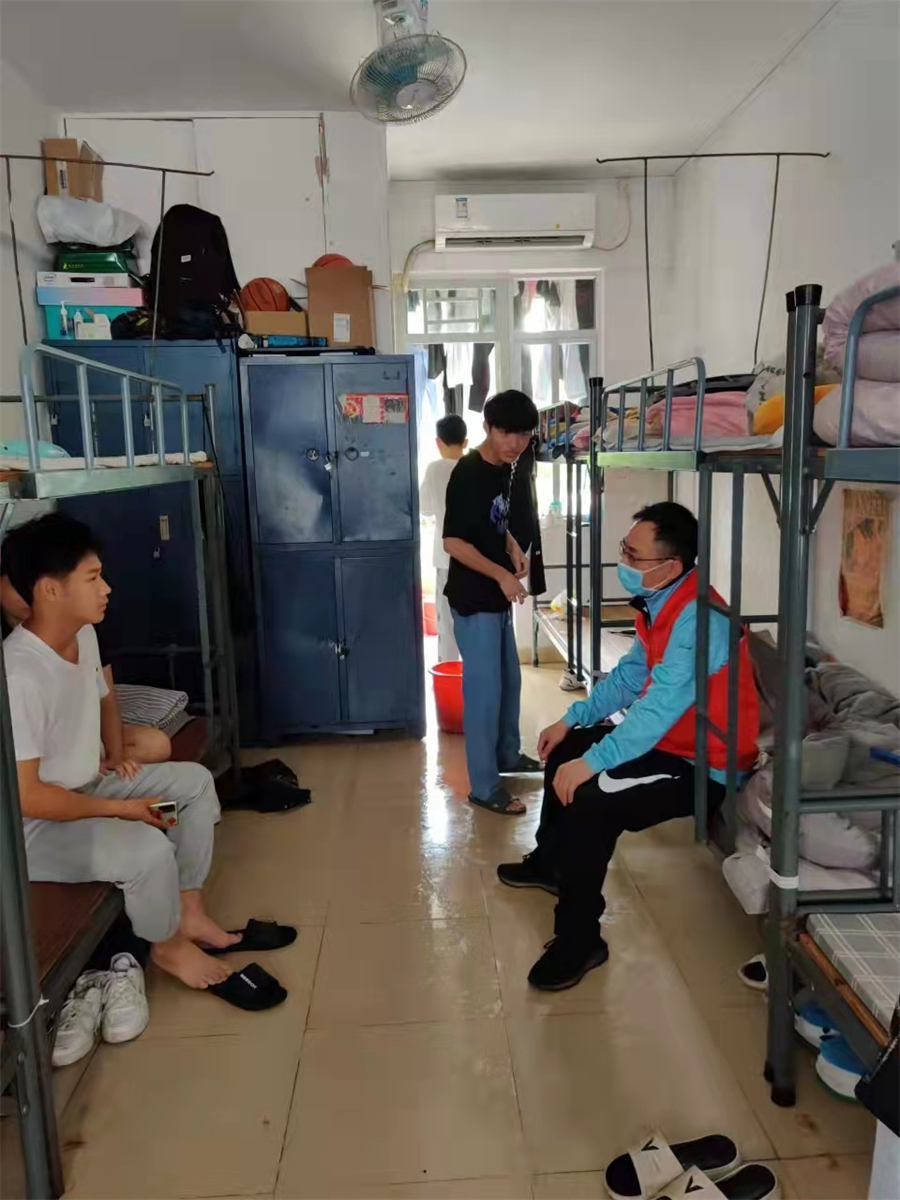 近日,中职教育部党总支组织党员志愿者周末回校,开展党员先锋队志愿活动,深入学生宿舍看望学生,了解同学们的学习生活情况,耐心解答疑问,以实际行动让学子们感受学校老师们的关爱。梅建波副校长、官春平副校长带头深入学生宿舍,了解封闭管理期间学生的思想动态,参加学生文体活动,缓解学生压力,与学生共度周末。两位校领导表示学校一直都非常关心同学们在校的学习、生活情况,学校与同学们同在,老师们一直在大家身边,希望同学们越是在此特殊时刻越要做好防护,多多锻炼身体,愉悦身心,好好学习,天天向上。各党支部党员以实际行动充分发挥党员的先锋模范作用,让党旗在疫情防控第一线高高飘扬。