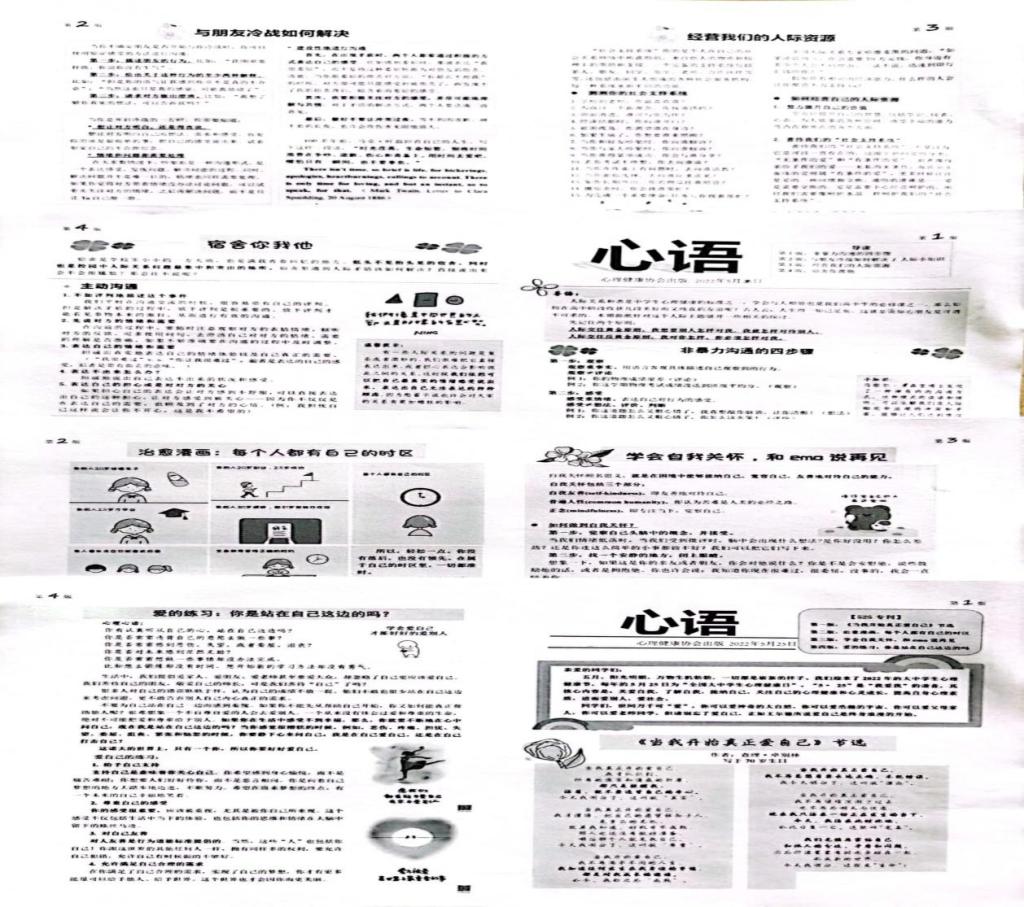 4.通过班级派发心理报刊、在校道开设宣传栏并通过广播站每日专题节目等宣传方式向全体师生普及基本心理相关知识。让学生明白出现心理问题并不是丢脸、可耻的事情,在当今社会,心理问题就像普通的伤风感冒一样随时随处存在的,我们应当及时积极去面对,并尽快找到合适的方法去解决。