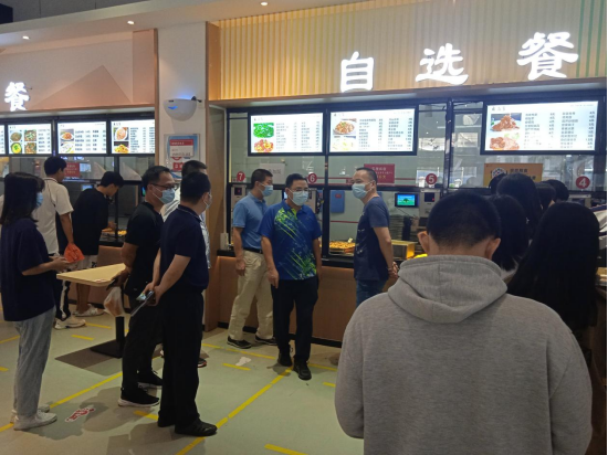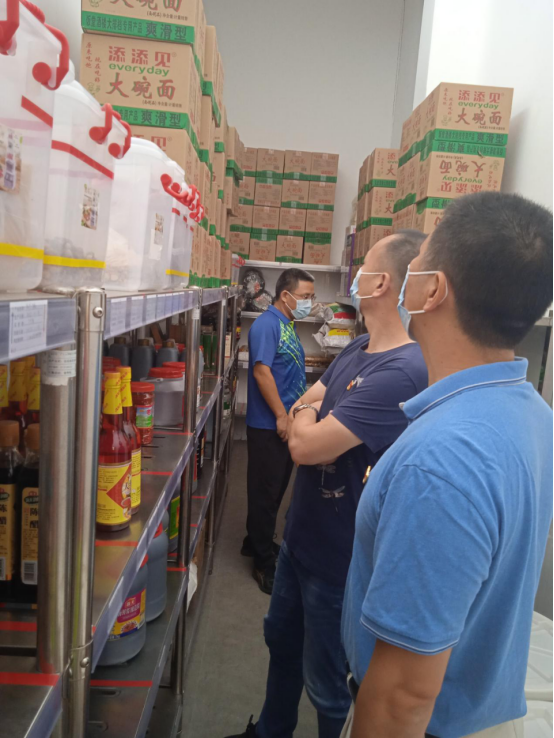接着,官春平副校长来到学校饭堂,逐个窗口查看饭菜种类和质量,询问学生对饭菜品种质量的评价,同时检查了饭堂物资的储备情况,要求饭堂经理在校园封闭期间一定要保证学生的饭菜质量,充分备足粮食物资,时刻准备应对突发情况。