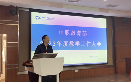 2023年2月23日下午,中职教育部举办了2023年度教学工作大会。会议由教务科周永江科长主持,中职教育部郑耀涛主任、钟义清副主任及各专业系部主任、全体教师及教学工作人员参加了本次大会。