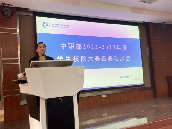 2023年2月27日下午,中职部召开2022-2023年度省职业院校学生技能大赛备赛动员会。中职教育部钟义清副主任、教务科周永江科长、各系室主任、竞赛指导老师、省赛参赛学生选手及各赛项梯队成员参与大会。