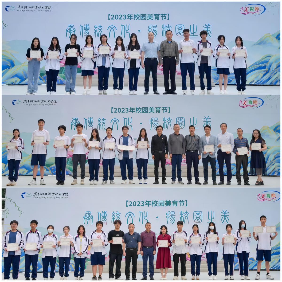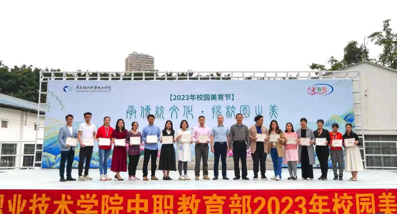 为贯彻落实《广东省人民政府办公厅关于全面加强和改进学校美育工作的实施意见》,落实立德树人根本任务,培育学生深厚的民族情感,充分发挥学校文化艺术传承创新的重要功能,促进学校内涵发展,努力提升学生的核心素养,以卓越担当向学校 90 周年校庆献礼。2023年4月11日下午,中职教育部在琶洲校区舞台举行了2023年校园美育节开幕会暨2022年广东省职业院校“技能成才·强国有我”主题教育活动表彰大会。官春平副校长,中职部党总支罗维东书记、郑耀涛主任、冯小健副主任、杨育斌副主任、高武义副主任,学生科陈树华科长、保卫科邓家艺科长、团委林得鹏书记,各专业系副主任、社团指导老师,部分学生干部代表以及社团成员代表参加了开幕会。开幕会由团委叶雪芬副书记主持。