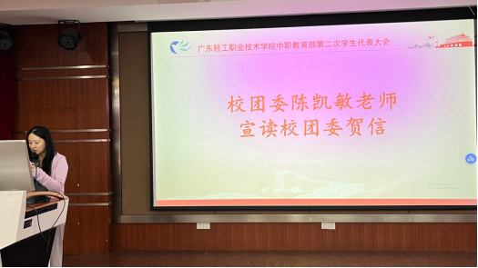 6月19日下午,中职部在琶洲校区新公寓二楼学术报告厅隆重召开第二次学生代表大会。学校副校长梅建波,中职教育部党总支书记罗维东、主任郑耀涛,学生工作部门负责人和各专业系副主任以及157名学生代表参加了本次学生代表大会。大会由第一届学生会主席团成员谭诗雨同学主持。