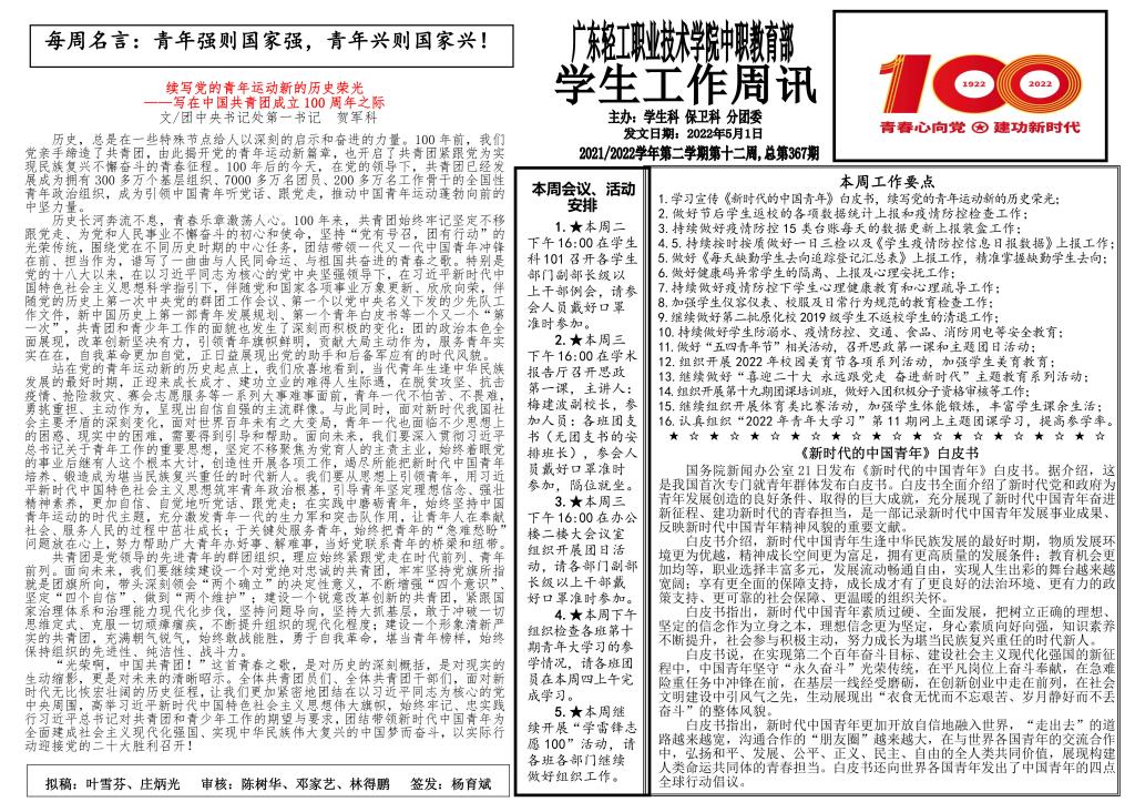 2021-2022学年第二学期学生工作第12周周讯
